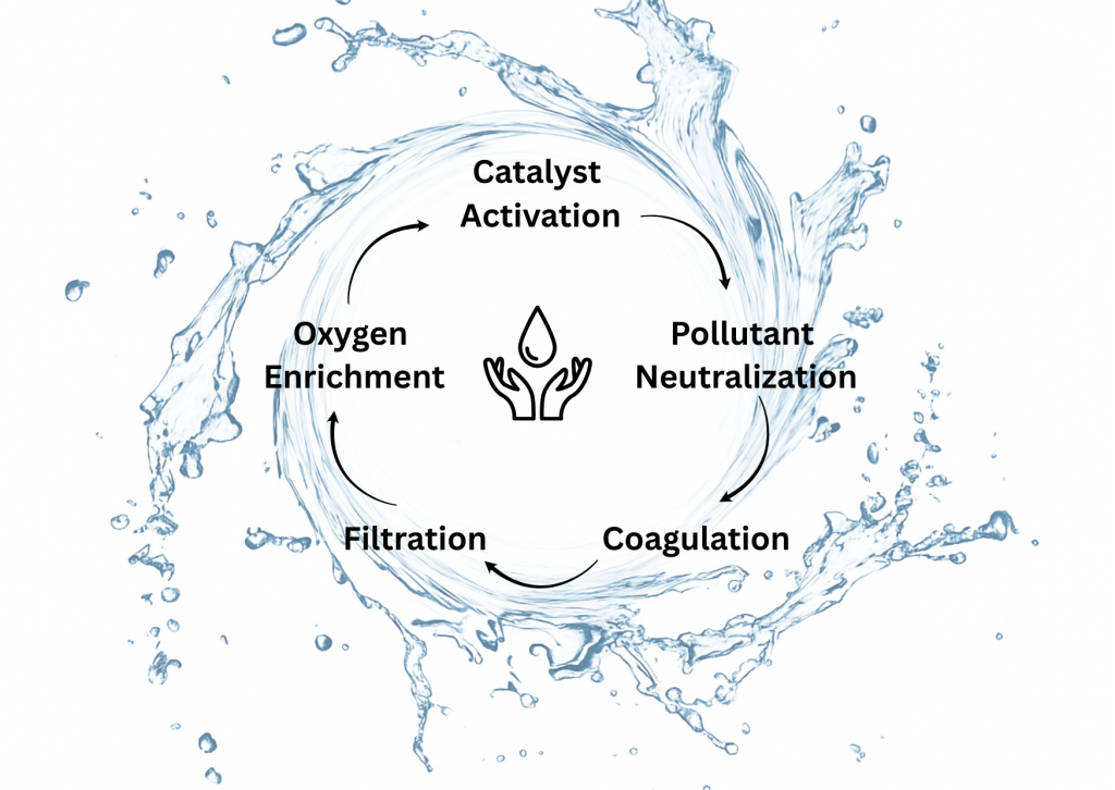 Our advanced water treatment process ensures cleaner, safer, and more sustainable water for industries and communities. Through catalyst activation, impurity removal, coagulation, filtration, and oxygenation, we deliver reliable solutions that restore balance and protect natural resources.